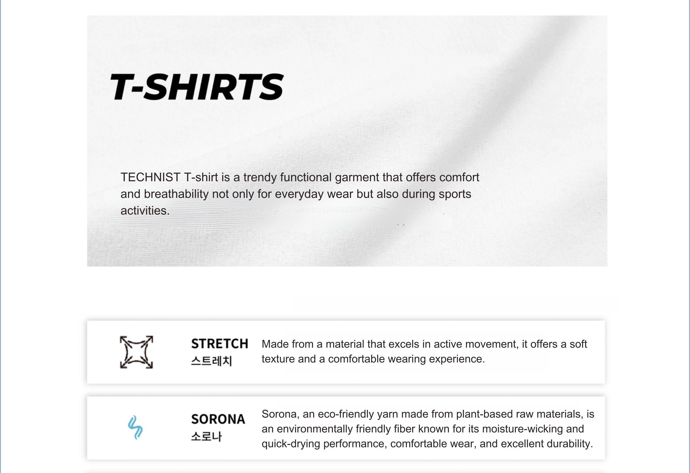 Sweat-absorbent and quick-drying fabric, Lightweight, cotton-like feel for comfort