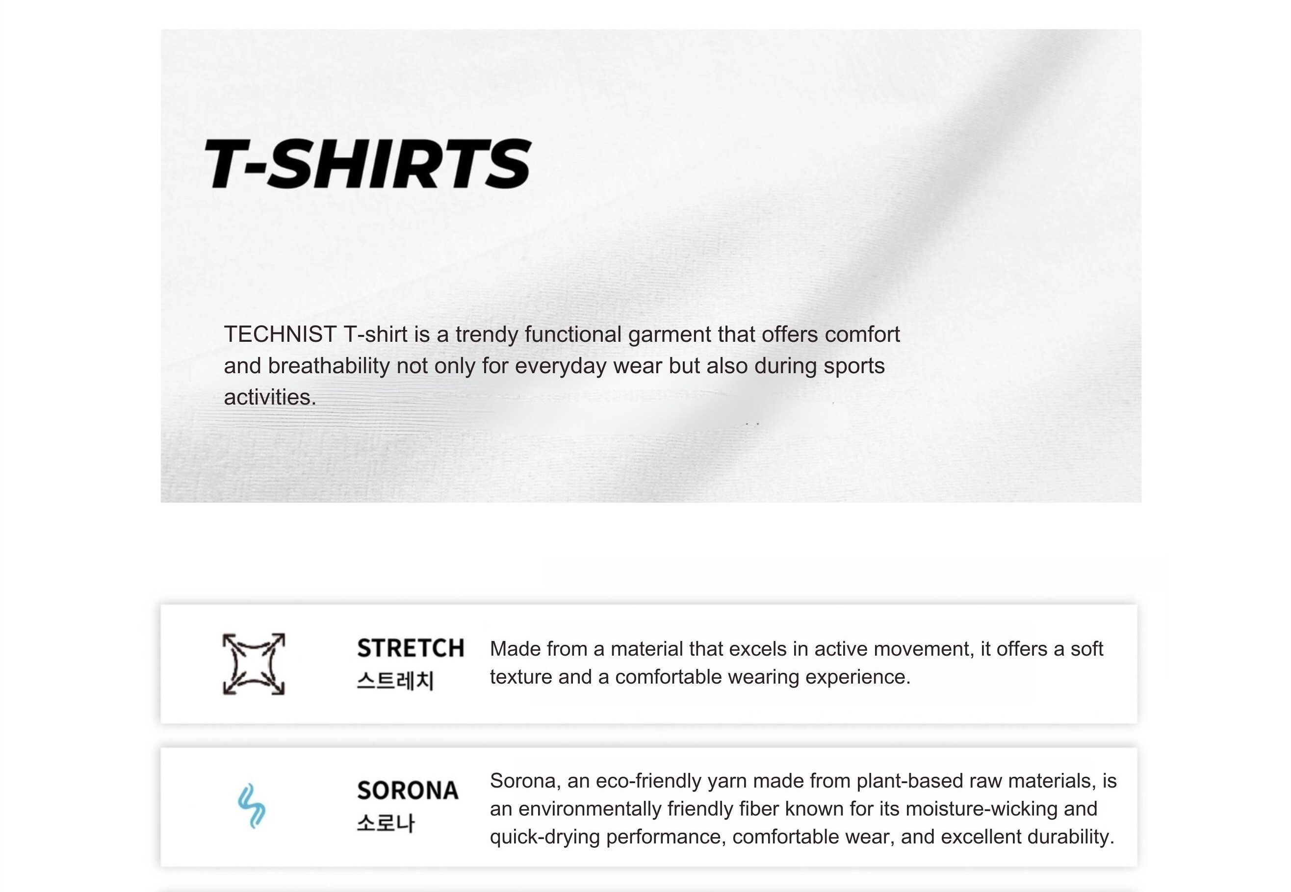 Sweat-absorbent and quick-drying fabric, Lightweight, cotton-like feel for comfort